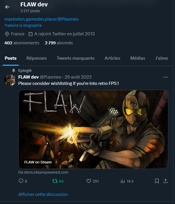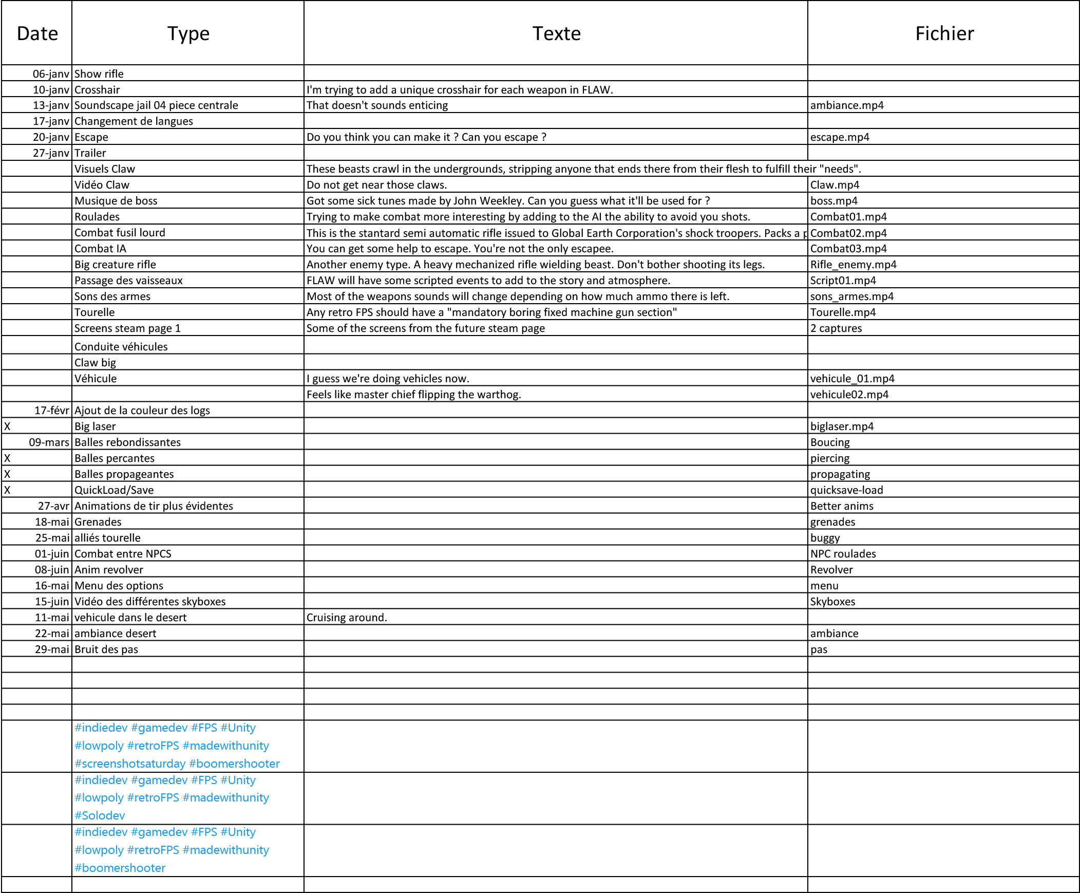 Je tiens également à jour des comptes afin de partager mon travail en tant que GameDev.